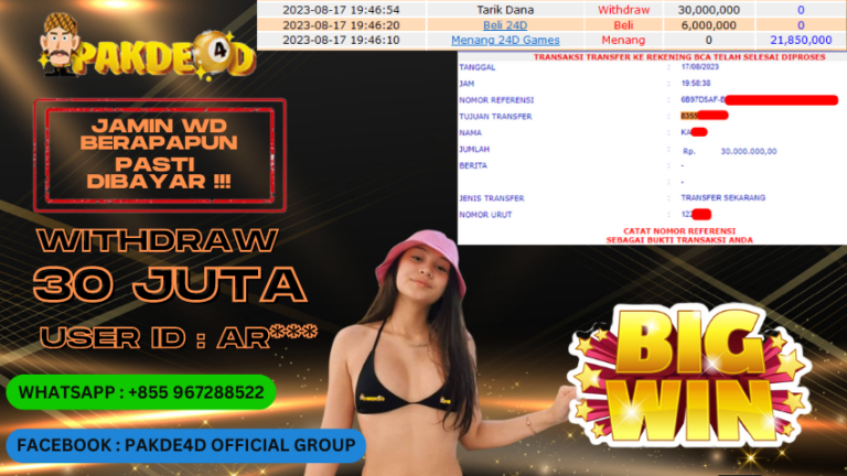 PAKDE4D JACKPOT DI PERMAINAN LIVE CASINO RP. 30.000.000 LUNAS