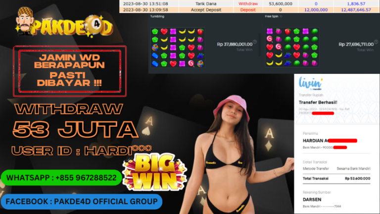 PAKDE4D JACKPOT DI PERMAINAN SLOT RP. 53.600.000 LUNAS