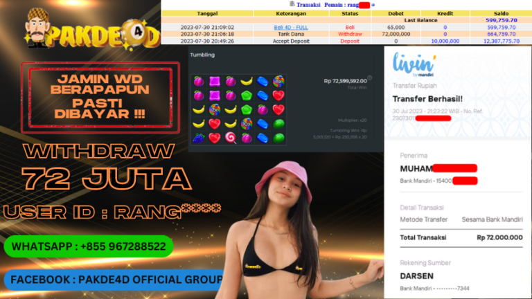 PAKDE4D JACKPOT DI PERMAINAN SLOT RP. 72.000.000 LUNAS