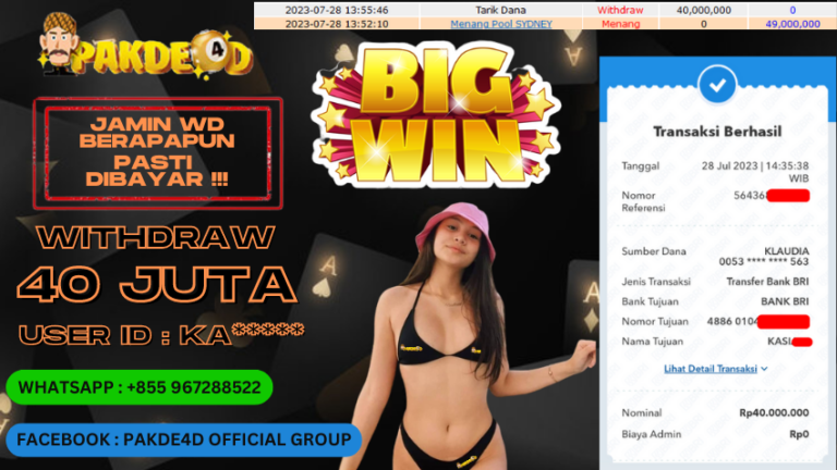 PAKDE4D JACKPOT DI PERMAINAN LIVE CASINO RP. 40.000.000 LUNAS