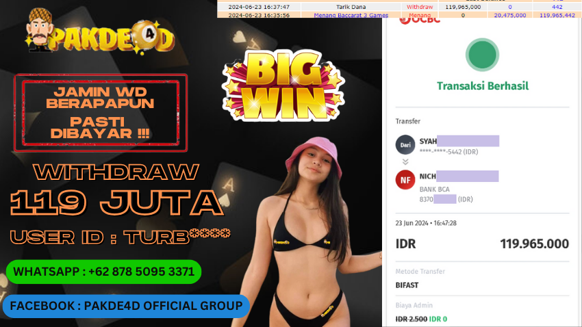 PAKDE4D JACKPOT DI PERMAINAN LIVE CASINO BACCARAT RP. 119.965.000,- LUNAS