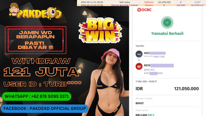 PAKDE4D JACKPOT DI PERMAINAN LIVE CASINO BACCARAT RP. 121.050.000,- LUNAS