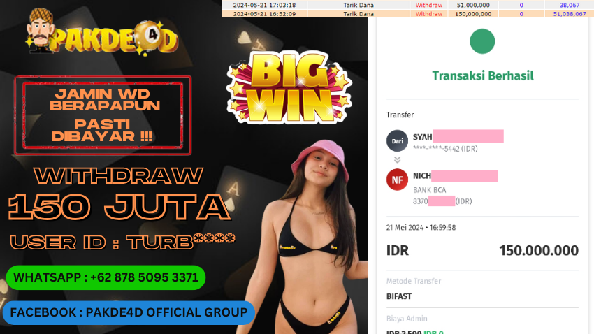 PAKDE4D JACKPOT DI PERMAINAN LIVE CASINO BACCARAT RP. 150.000.000,- LUNAS