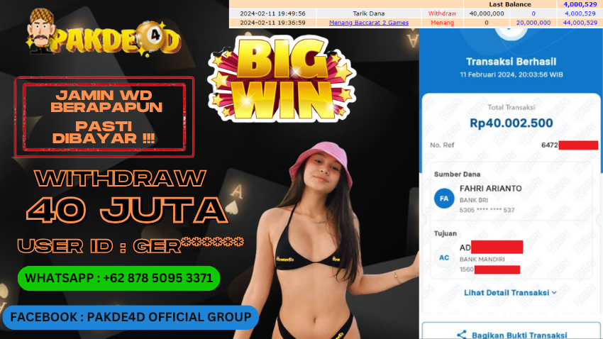 PAKDE4D JACKPOT DI PERMAINAN LIVE CASINO BACCARAT RP. 40.000.000 LUNAS