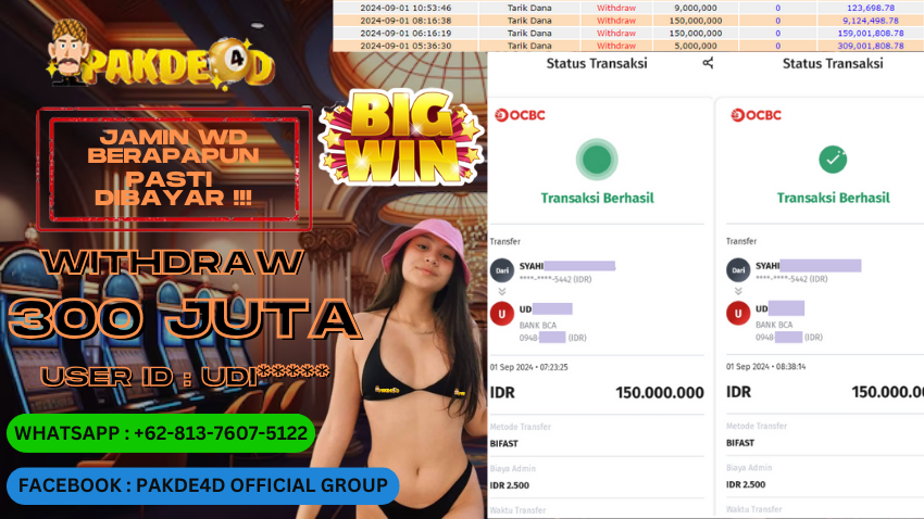 Selamat Kepada Member Setia PAKDE4D dengan USER ID : UDI***** di PERMAINAN SLOT sebesar Rp. 300.000.000,- LUNAS langsung mendarat ke rekening tanpa bertele – tele. Terimakasih telah mempercayakan PAKDE4D sebagai Situs Bandar Terpercaya dan Terjamin Aman! Tunggu apalagi? Daftar sekarang juga bersama PAKDE4D dan dapatkan berbagai promo menarik setiap harinya.