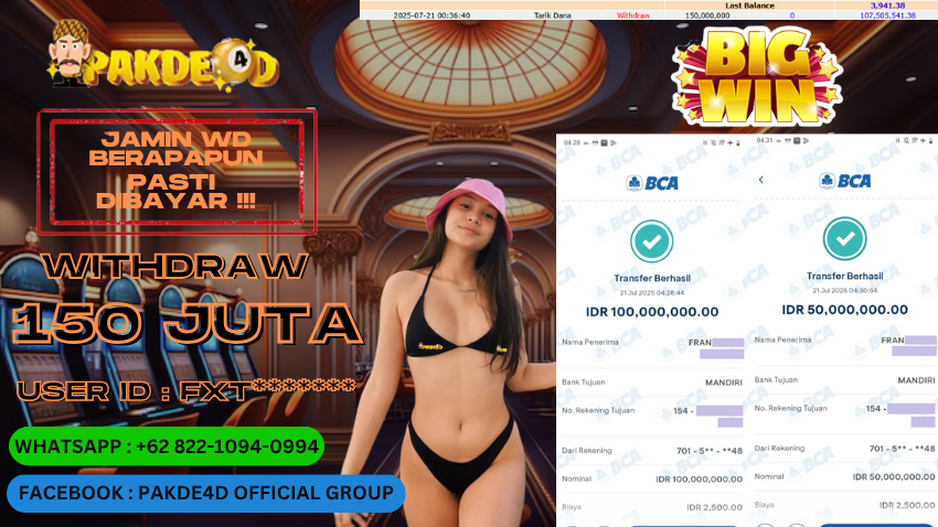 Selamat Kepada Member Setia PAKDE4D dengan USER ID : FXT******* di PERMAINAN PGSOFT Mafia Mayhem sebesar Rp. 150.000.000,- LUNAS langsung mendarat ke rekening tanpa bertele – tele. Terimakasih telah mempercayakan PAKDE4D sebagai Situs Bandar Terpercaya dan Terjamin Aman! Tunggu apalagi? Daftar sekarang juga bersama PAKDE4D dan dapatkan berbagai promo menarik setiap harinya.