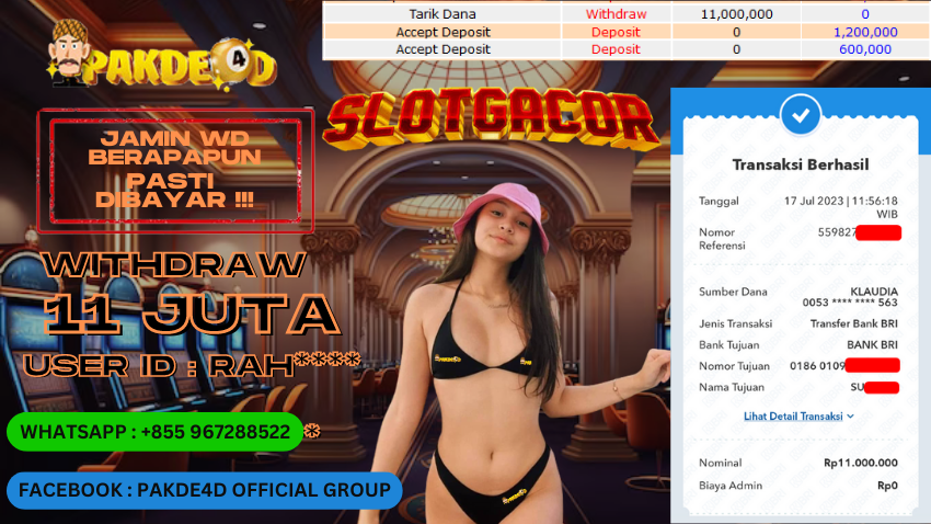 Selamat Kepada Member Setia PAKDE4D dengan USER ID : RAHU*** di PERMAINAN SLOT sebesar Rp. 11.000.000,- LUNAS langsung mendarat ke rekening tanpa bertele – tele. Terimakasih telah mempercayakan PAKDE4D sebagai Situs Bandar Terpercaya dan Terjamin Aman! Tunggu apalagi? Daftar sekarang juga bersama PAKDE4D dan dapatkan berbagai promo menarik setiap harinya.