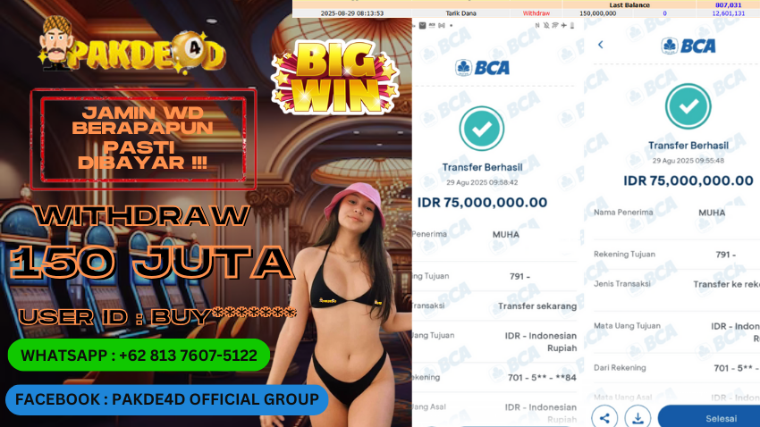 PAKDE4D JACKPOT DI PERMAINAN SLOT RP. 150.000.000,- LUNAS