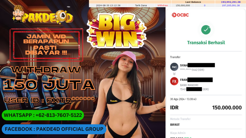 PAKDE4D JACKPOT DI PERMAINAN SLOT RP. 150.000.000,- LUNAS