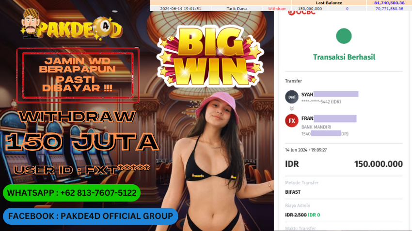 PAKDE4D JACKPOT DI PERMAINAN SLOT RP. 150.000.000,- LUNAS