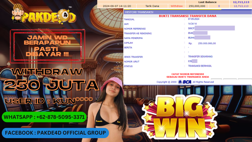 PAKDE4D JACKPOT DI PERMAINAN SLOT RP. 250.000.000,- LUNAS