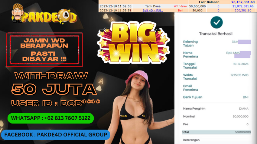 PAKDE4D JACKPOT DI PERMAINAN SLOT RP. 50.000.000 LUNAS