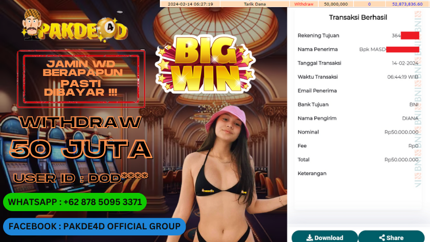 PAKDE4D JACKPOT DI PERMAINAN SLOT RP. 50.000.000,- LUNAS