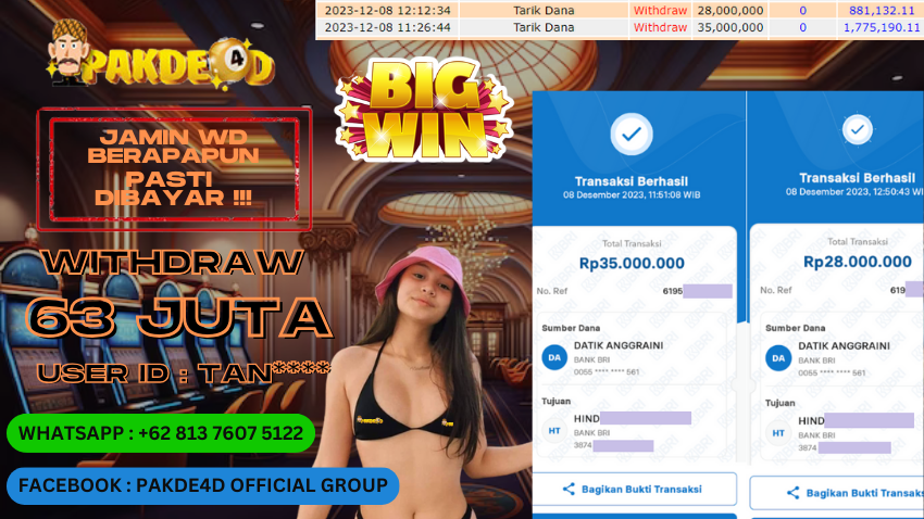 PAKDE4D JACKPOT DI PERMAINAN SLOT RP. 63.000.000 LUNAS