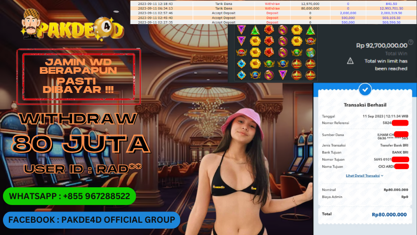 PAKDE4D JACKPOT DI PERMAINAN SLOT RP. 80.000.000 LUNAS