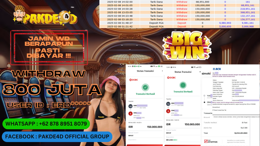 Selamat Kepada Member Setia PAKDE4D dengan USER ID : ERD***** di PERMAINAN SLOT sebesar Rp. 818.951.000,- LUNAS langsung mendarat ke rekening tanpa bertele – tele. Terimakasih telah mempercayakan PAKDE4D sebagai Situs Bandar Terpercaya dan Terjamin Aman! Tunggu apalagi? Daftar sekarang juga bersama PAKDE4D dan dapatkan berbagai promo menarik setiap harinya.