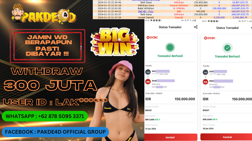 Berikut ini adalah BUKTI JACKPOT PAKDE4D yang sudah diproseskan langsung ke rekening member kami