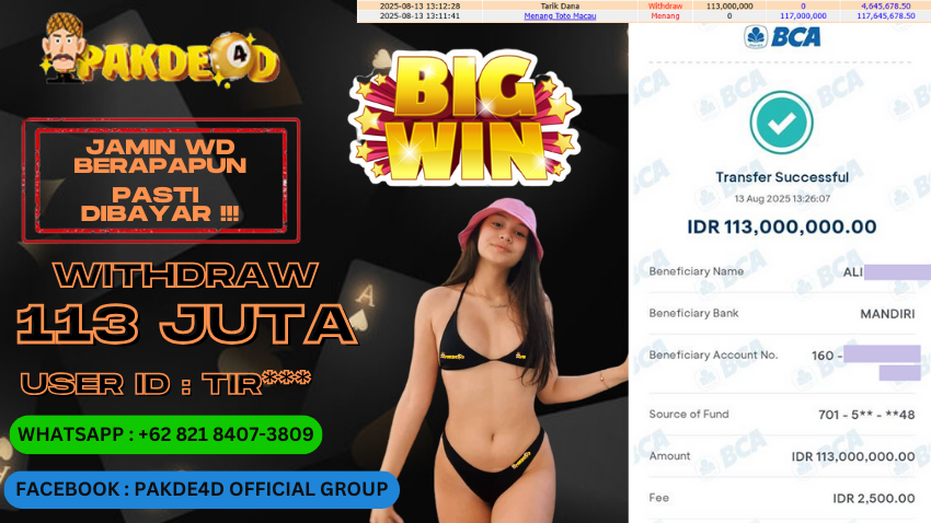 PAKDE4D JACKPOT DI PERMAINAN TOTOMACAU4D RP. 113.000.000,- LUNAS